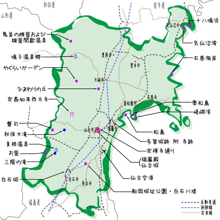 宮城県 都道府県から地図を検索マピオン。
