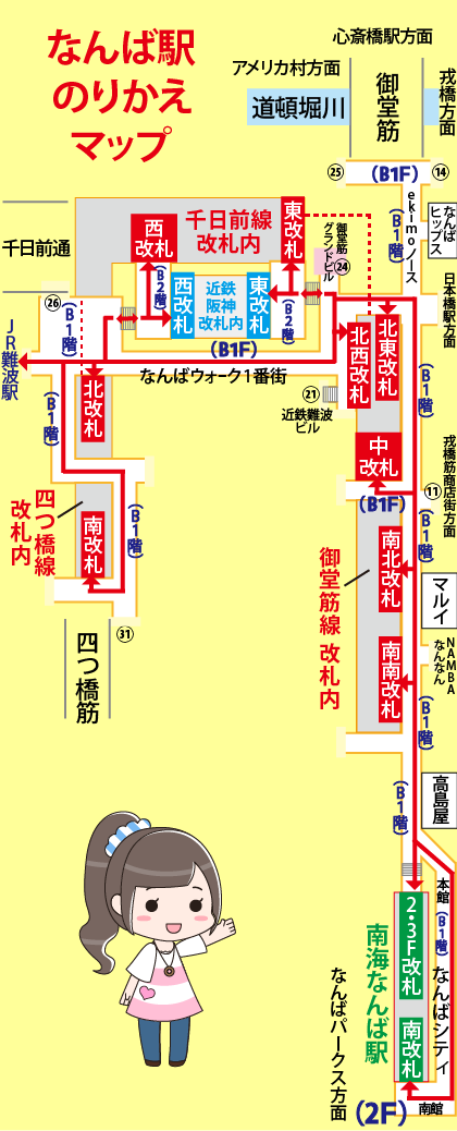 JR難波駅から道頓堀までの行き方 かんたんアクセス。