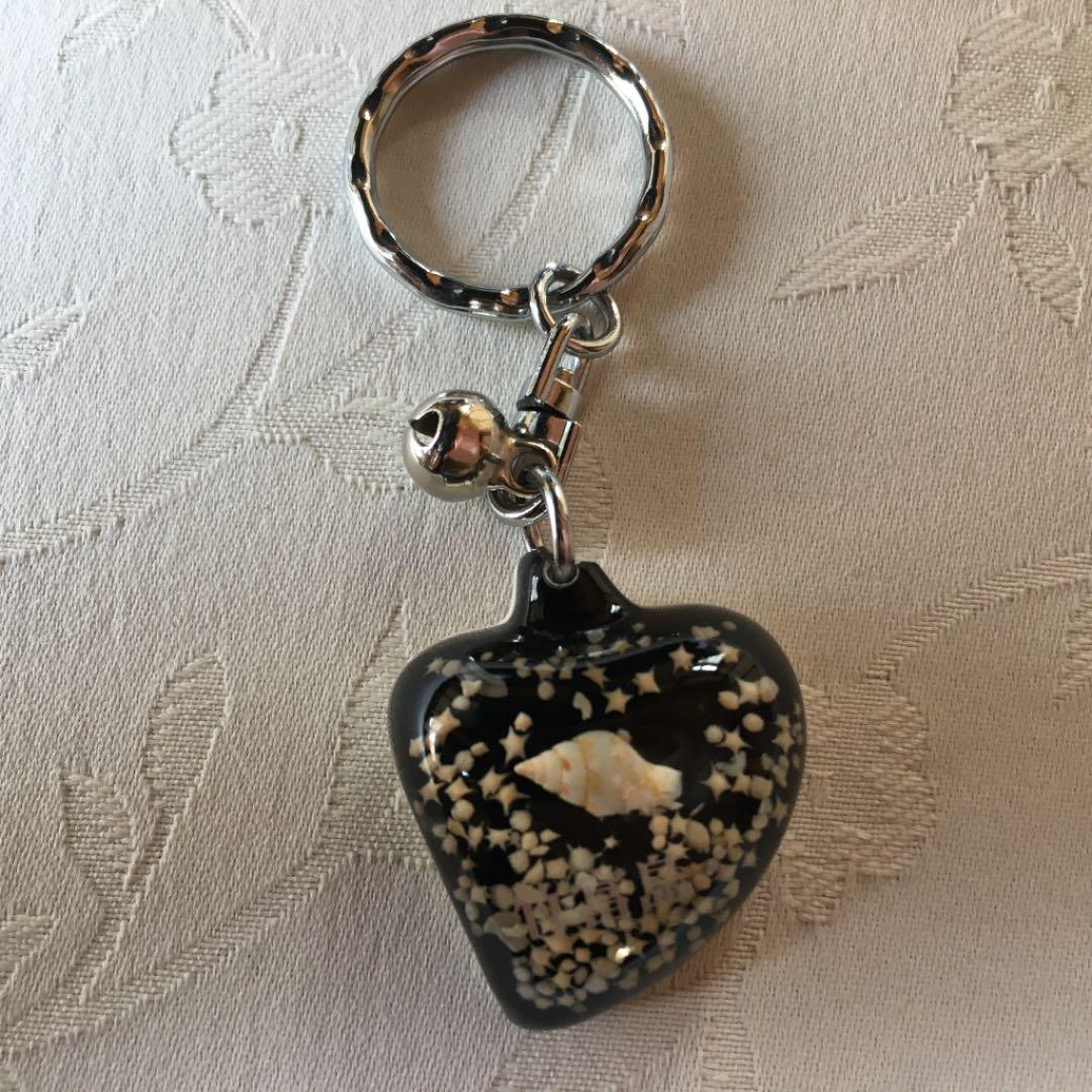 美品 竹富島 星の砂 ハート型 キーホルダ。