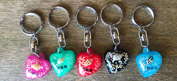 <キーホルダー>八重山竹富島星の砂キーホルダー ハート型5色セット。