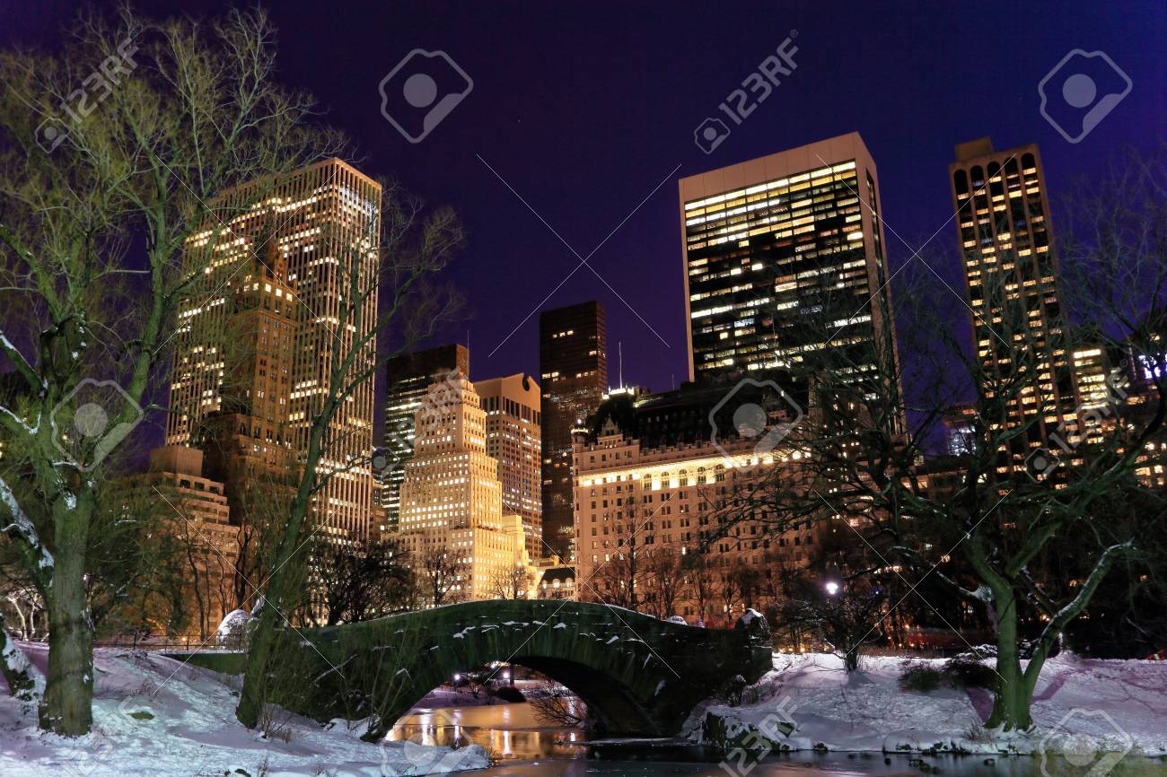 夜のセントラルパーク、ニューヨークの冬景色の写真素材・画像素材 Image 86549936。