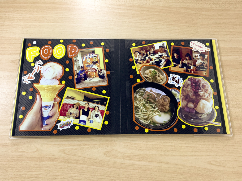 スクラップブックタイプのアルバムでつくる、卒業旅行の思い出手作りアルバム 手作りアルバムアルバムキッチン。