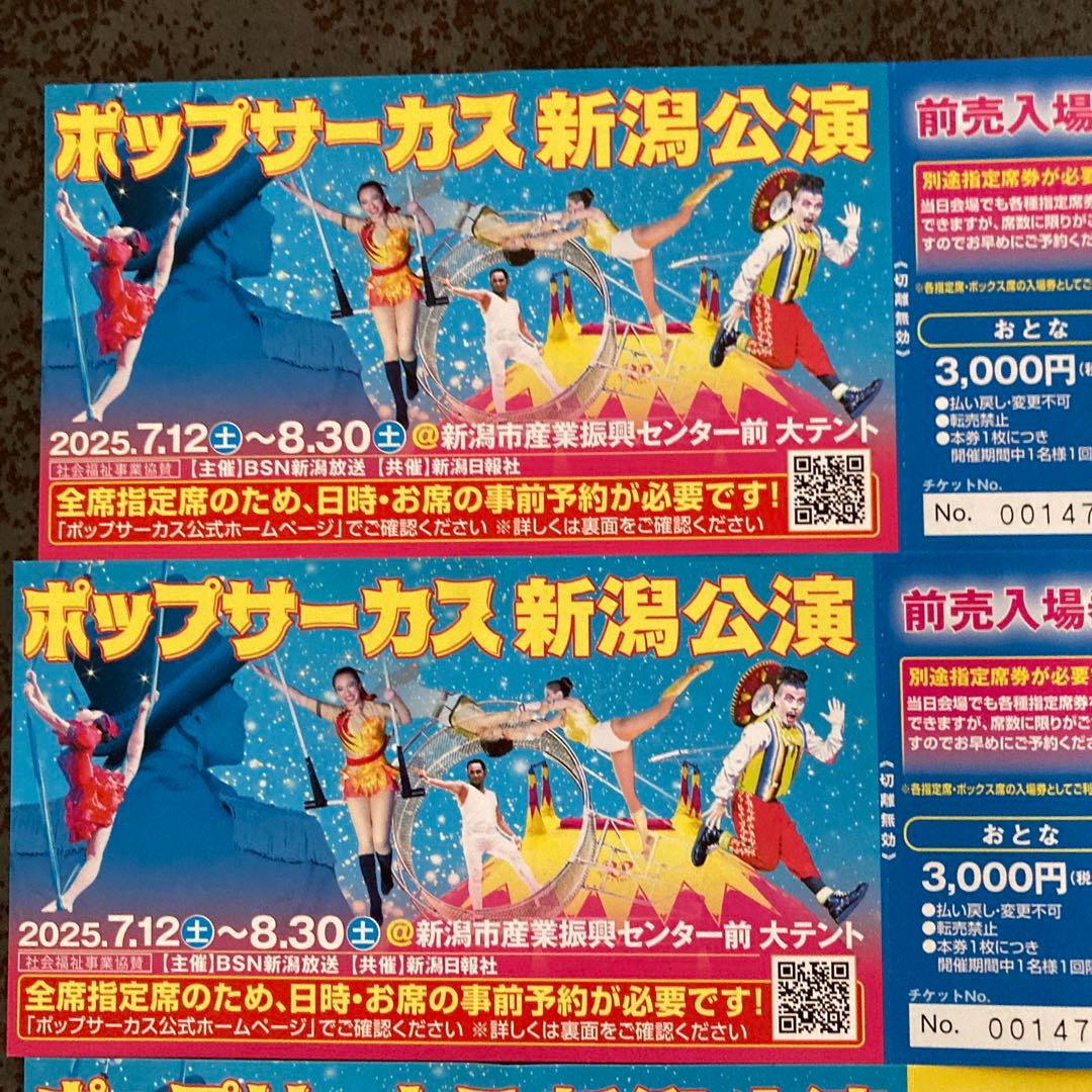 ポップサーカス 新潟公演 チケット2枚。