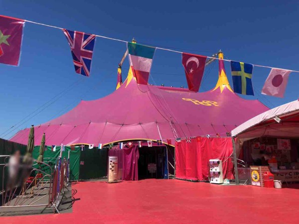 2025.7.25ポップサーカス新潟公演 新潟市産業振興センター前大テント 新潟県 新潟市 ポップサーカス。