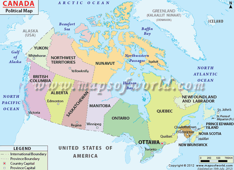 カナダの地図。