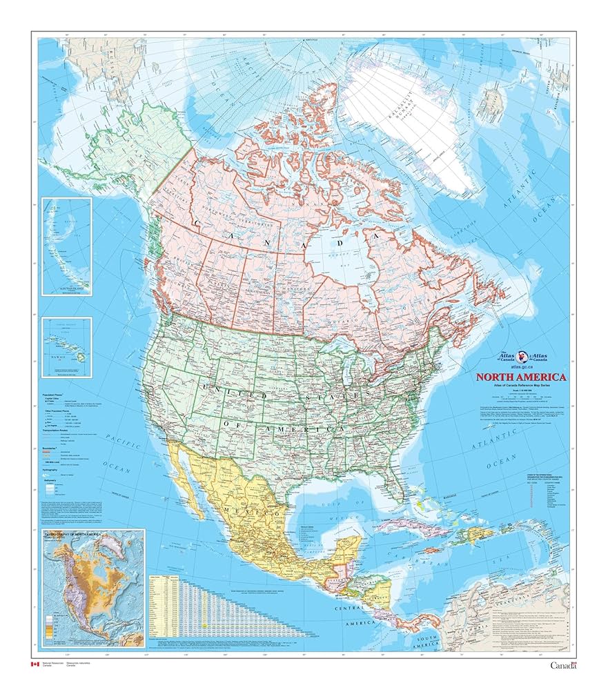 北米ウォールマップ - カナダのアトラス。