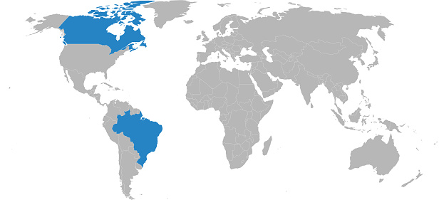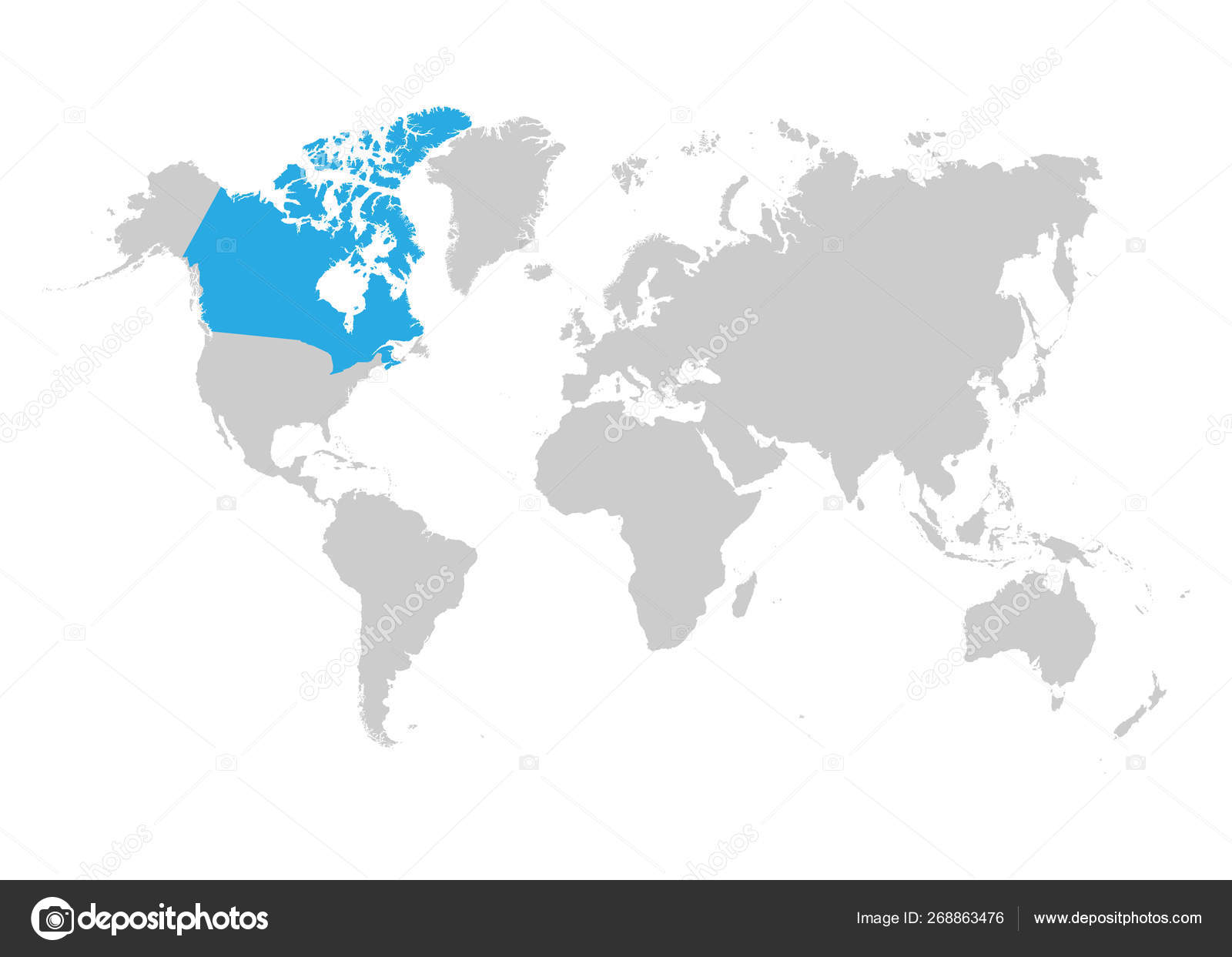 カナダの地図は、世界地図上で青色で強調表示されます ストックベクター ©AndrOm 268863476。