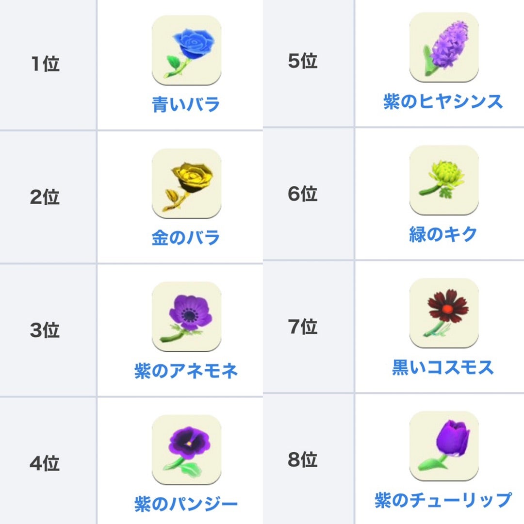 あつ森 レア花ランキング一覧表と増殖方法 あつまれどうぶつの森 ゲームエイト。
