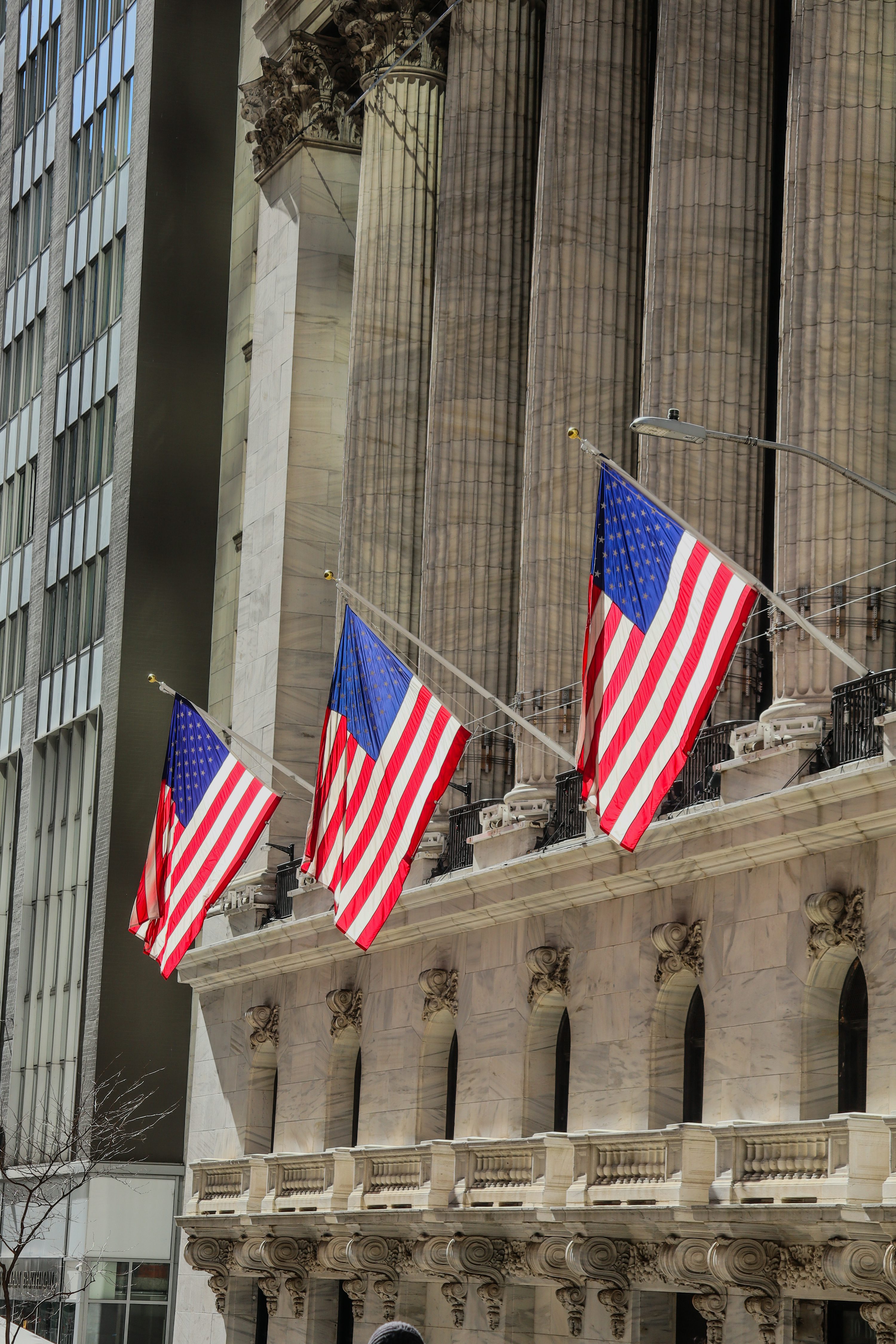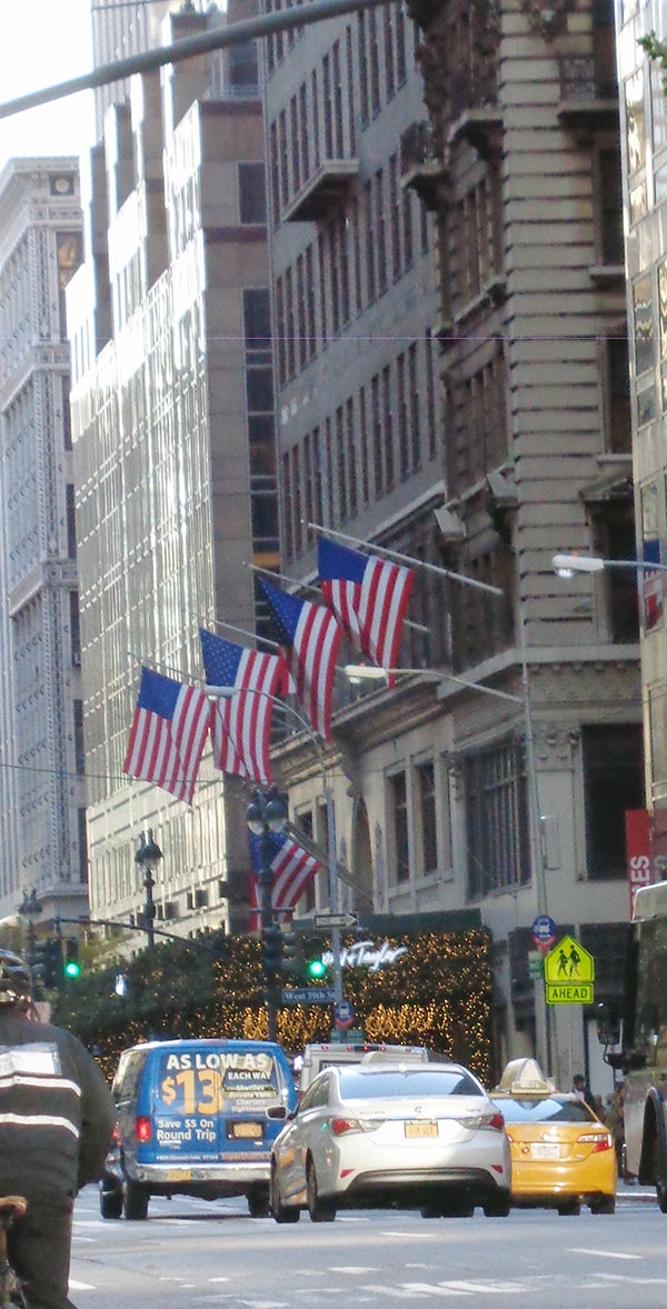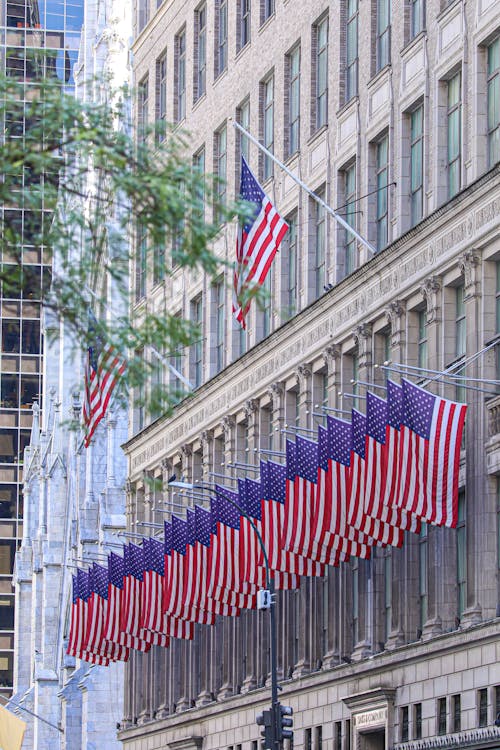 ニューヨーク市の路上に掲げられたアメリカ国旗 · 無料の写真素材。