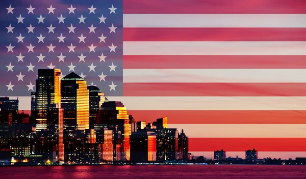 アメリカの国旗とアメリカ ニューヨーク市 — ストック写真。