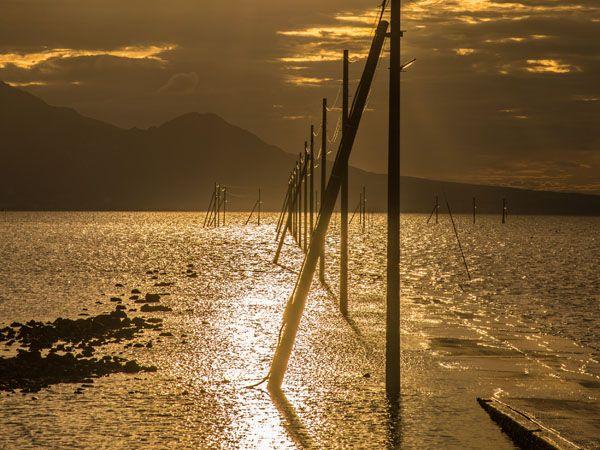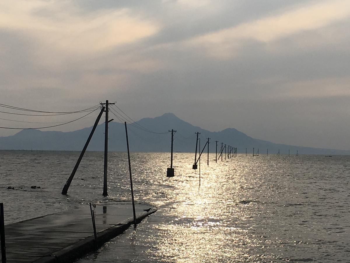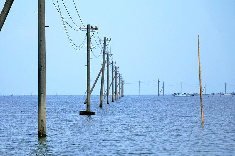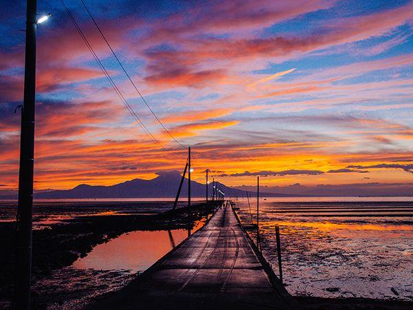 熊本・宇土 海に沈む電柱群と道? 長部田海床路が誘う幻想世界。