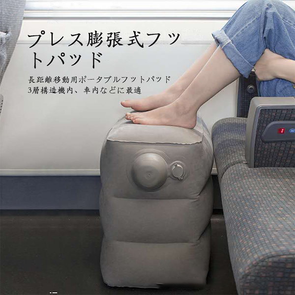 フットレスト 飛行機 デスクワーク ポンプ不要 押すだけ簡単空気入れ。
