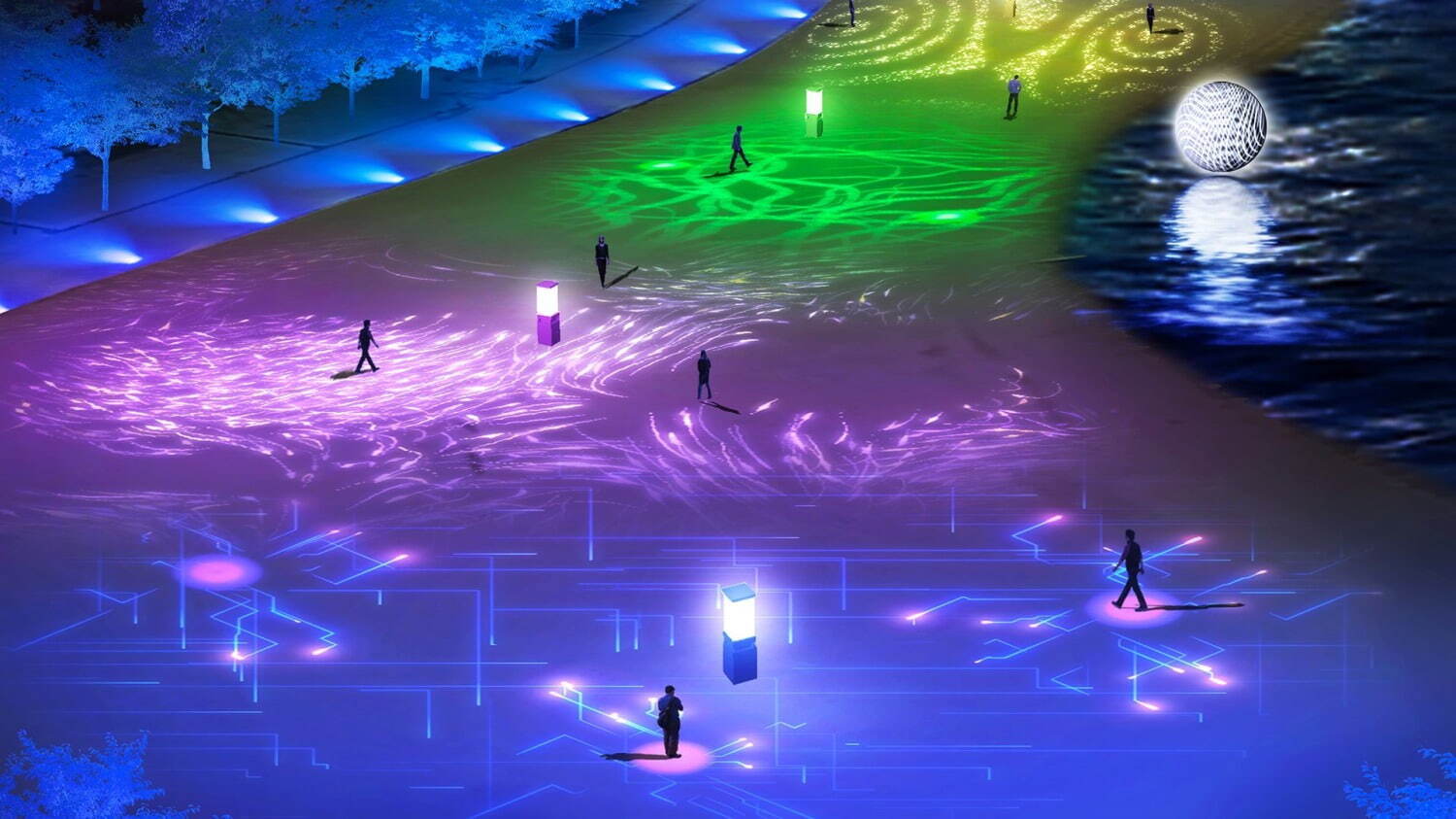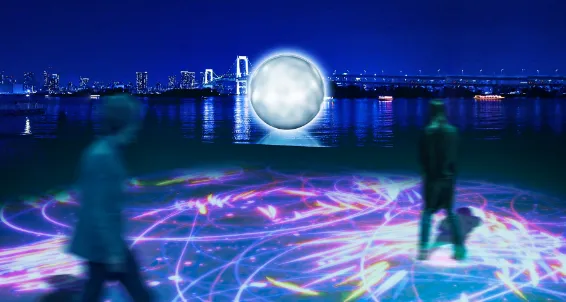 お台場海浜公園 おだいばビーチ」を彩るビーチアート、動作で変化する“光と音”&海辺に浮かぶ月 - ファッションプレス。