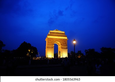 ニューデリー・インドのインド門の夜景写真素材1805563963Shutterstock。