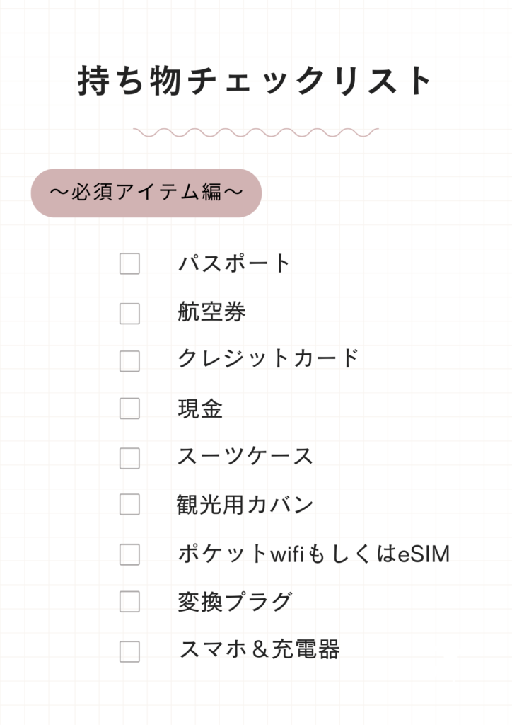 女子旅グッズ 女ひとり海外旅行の持ち物チェックリスト おすすめミサトリップ。