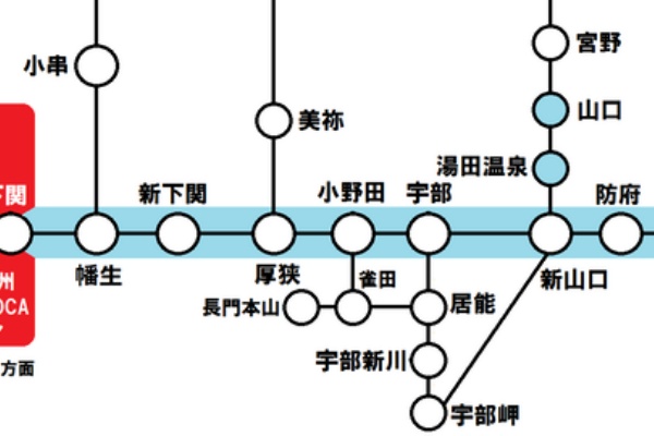 山陽小野田から下関行きの列車のチケット価格とスケジュール。