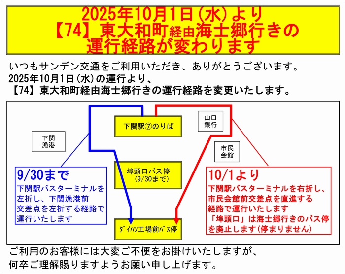 令和7年 2025年 10月1日 水一般路線ダイヤ改正のお知らせサンデン交通株式会社。