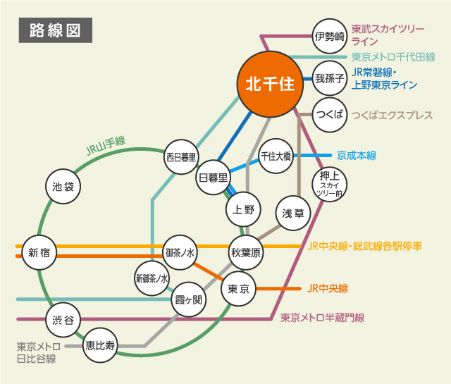 新宿から北千住への行き方。