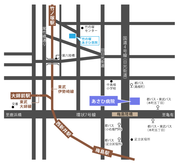 交通のご案内 - 足立区のあさひ病院です。