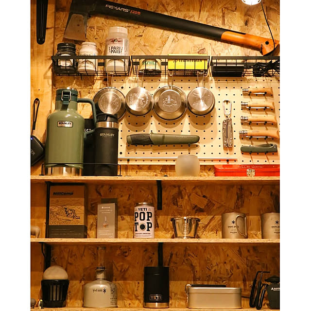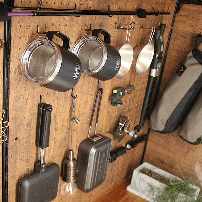 自宅でキャンプ用品の収納をおしゃれに見せるキャンプギア収納術Greenfieldグリーンフィールド アウトドア&スポーツ。