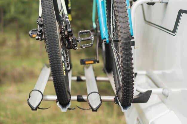 キャンピングカーに自転車を乗せた旅のコンセプトPremium写真。