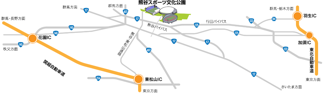 アクセス熊谷スポーツ文化公園公益財団法人埼玉県公園緑地協会。