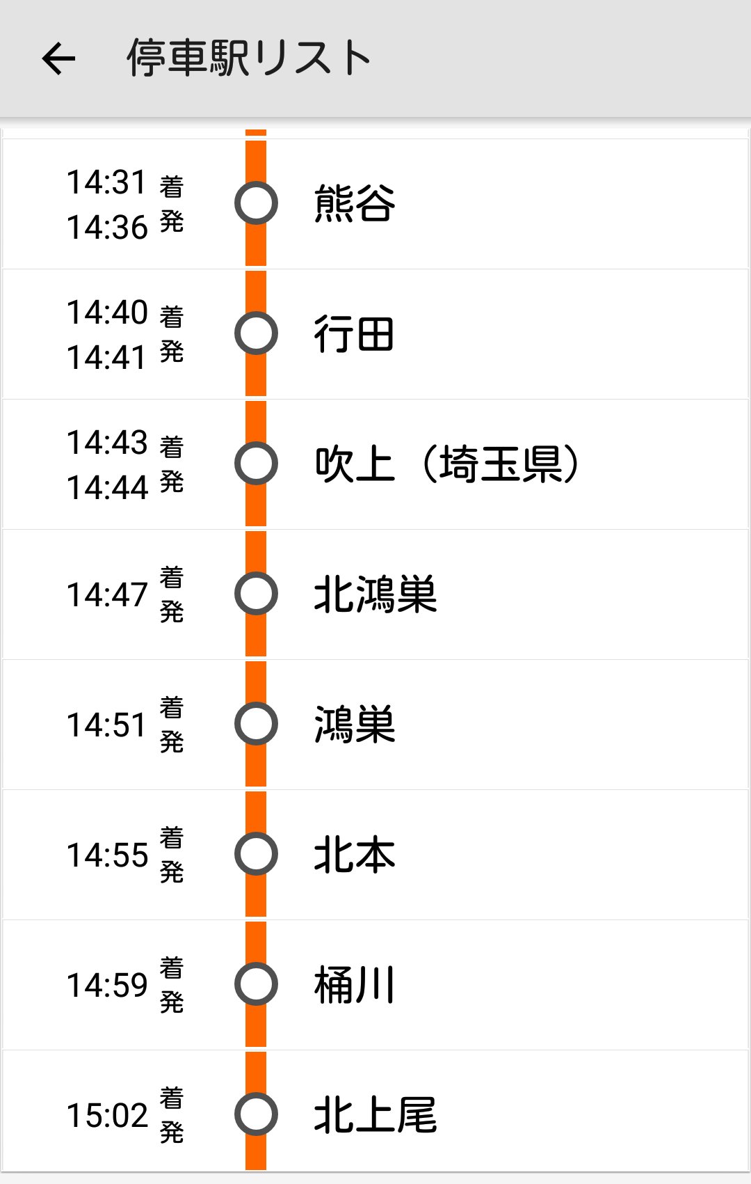 東京 すべての駅 から熊谷までの列車の時刻表と料金。
