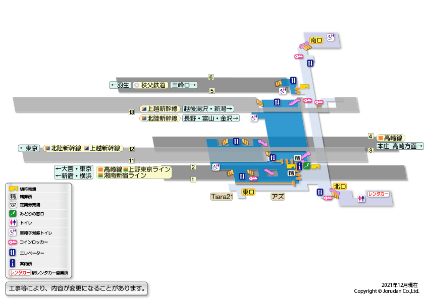 熊谷駅の構内図 - 駅の情報 -。