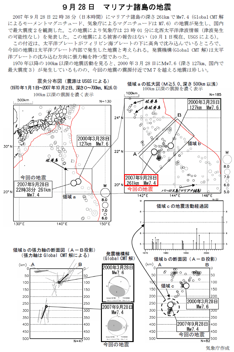 9月28日 マリアナ諸島の地震。