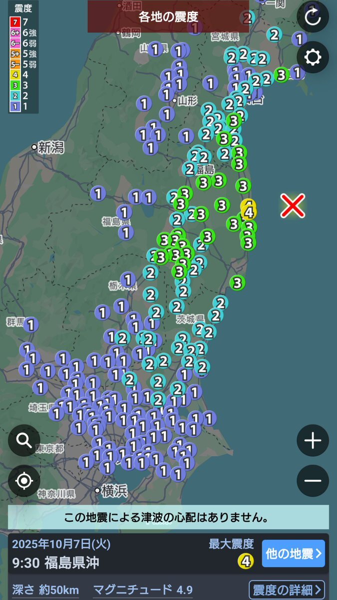 福島県沖で微小地震が再び増加 2025 10 07 SNSのバズまとめ。
