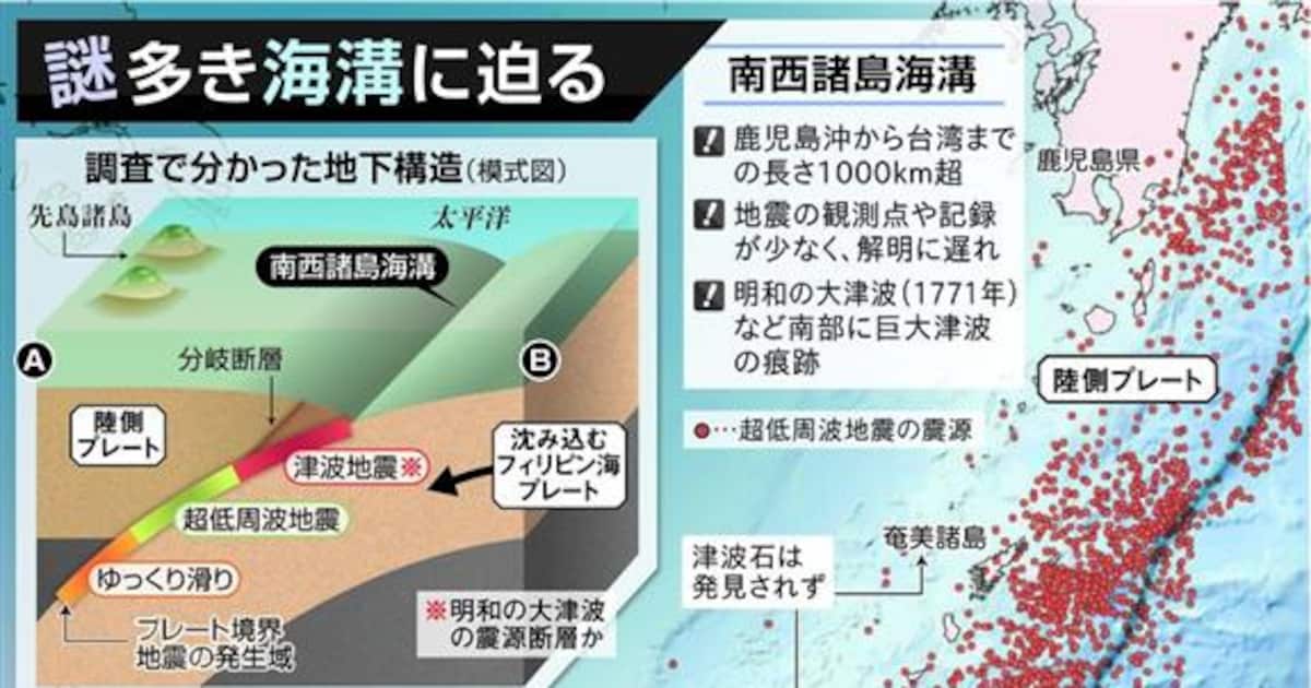 科学 謎に包まれていた南西諸島海溝の地震、大津波の起きやすさに地域差 プレート境界の解明進む -。