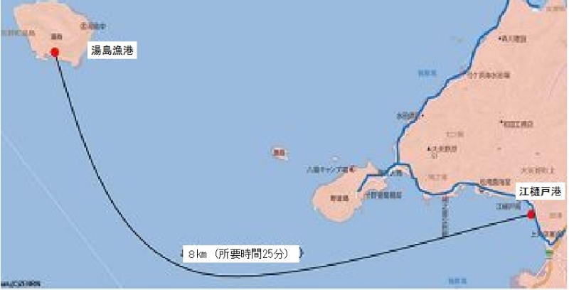 湯島~江樋戸航路上天草市。
