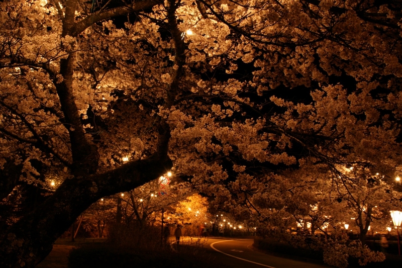 上野公園桜まつり 2014、ライトアップに浮かび上がる桜たち。