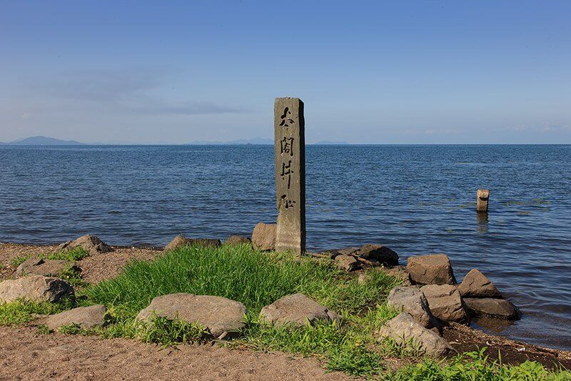 豊臣秀吉公の居城であった長浜城跡にて。 この城跡は、自然豊かな総合公園、豊公園内にあります。琵琶湖沿いから見える幻想的な夕陽は「日本の夕陽百選」に選ばれているそうです。 長浜城。