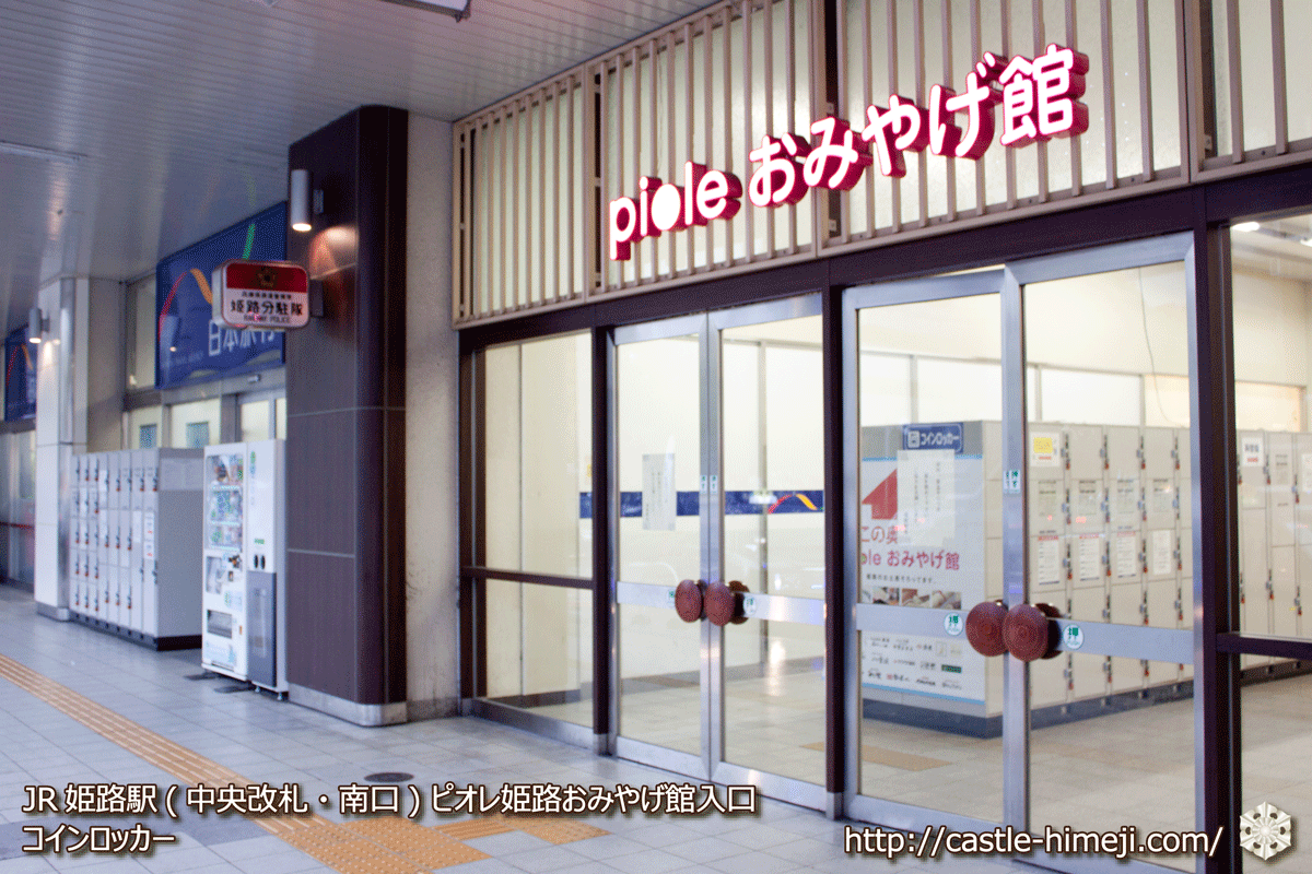JR姫路駅 中央改札・南口ピオレ姫路おみやげ館入口・コインロッカー情報 -姫路城観光おすすめ・見どころ案内。